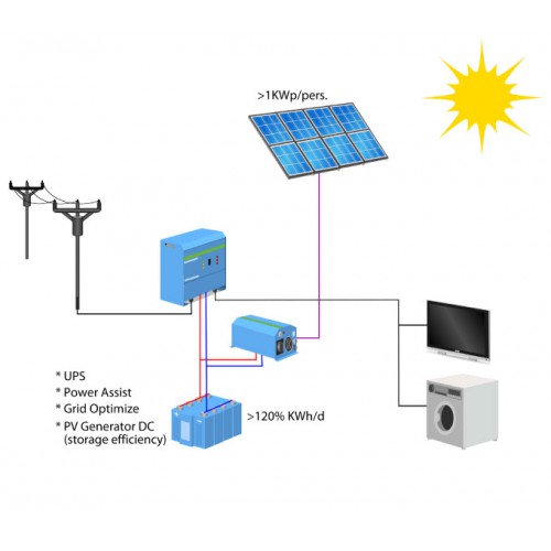 Dosáhněte více než 90%-ní síťové nezávislosti s naším nákladově efektivním řešením na bázi výhradního využití solární energie pro jednočlenné domácnosti nebo odlehlé stavby. Při minimálním požadavku na prostor a jednoduché instalací má toto řešení pozoruhodné technické parametry:
